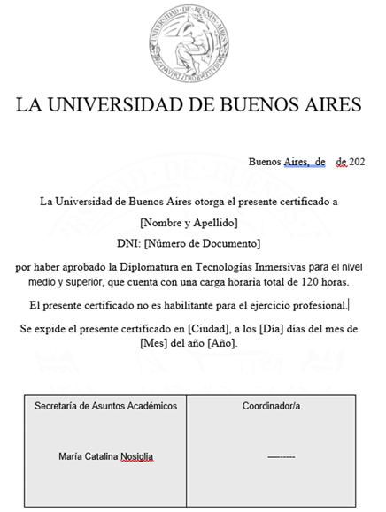 a. Denominación: Diplomatura en tecnologías inmersivas para la enseñanza del nivel medio y superior.